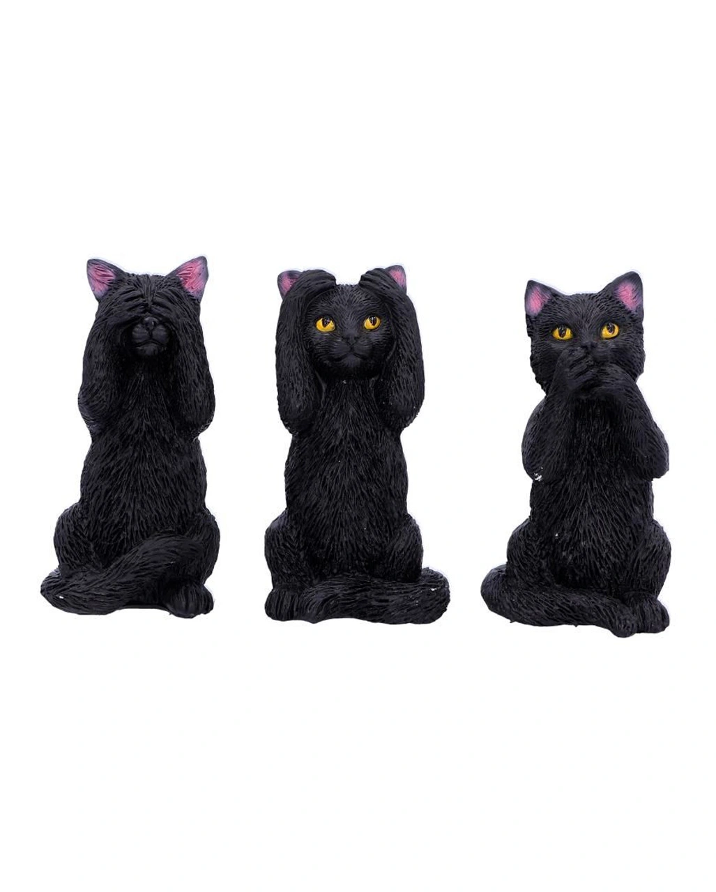 Unsere Drei weise schwarze Katzen stellen den bekannten Konfuzius Spruch, der normalerweise von Affen gezeigt wird, einmal anders dar. Damit sind die Deko Miezen ein echter Hingucker in jedem Regal. Ob als Halloween Dekorationen oder als Wohnaccessoire, bei diesem coolen Anblick ist es kaum möglich, den Mund zu halten oder nicht hinzusehen. Jeder, der die klugen Deko Katzen sieht, wird begeistert sein.