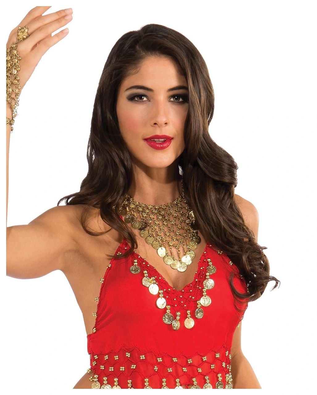 Lieferumfang: 1 x Exotisches Bauchtänzerin Kostüm mit Münzen rot
