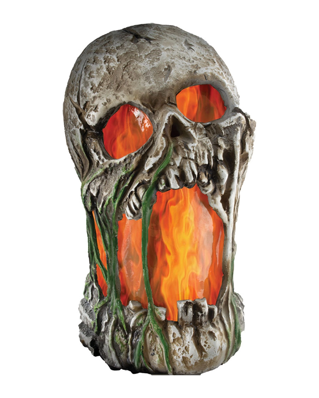 Verwesender Schädel mit leuchtenden Flammen als Effekt Deko