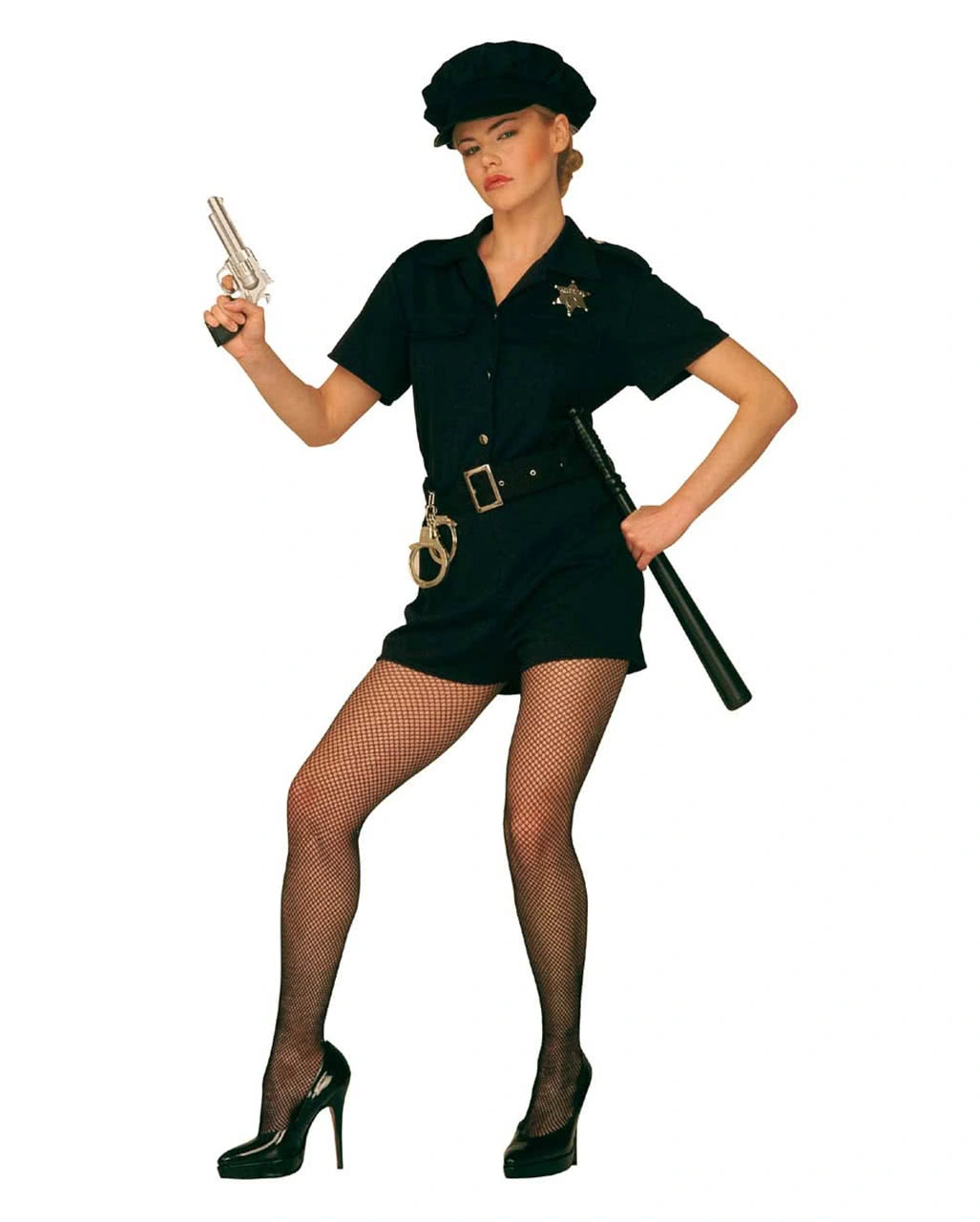 Sehr sexy und kurzes Polizei Outfit für das weibliche Geschlecht! Der Polizistin-Mini-Jumpsuit ist mit silberfarbenen Knöpfen zu schließen und kommt mit einem Gürtel. Die erotische Polizei Uniform aus dunkelblauen Stoff kommt mit der typischen Polizeimütze mit schwarzem Schild. Das erotische heiße Polizistin Kostüm ist auch für heiße Auftritte als Gogo geeignet und lässt so manchen Mann gerne als Schwerverbrecher enden. Die Sexy Netzstrumpfhose Schwarz , Polizei Pistole Astra 17cm , Special Agent Polizeimarke und Metall Handschellen nicht inkl.