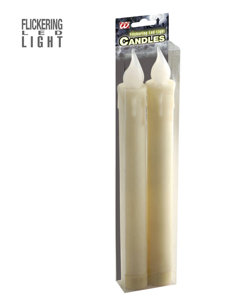 Die Kerzen des LED Tropfkerzen Set Beige haben eine Birne in Form einer Flamme und das Licht „brennt“ flackernd rot/orange. Die Tischdeko hat den Anschein, als ob Wachs langsam herunter tropfen würde. Die beigen Kerzen sind ungefähr 21 cm lang und 2 cm breit. Am unteren Teil der Kerzen befindet sich ein Fach mit Schraubverschluss, in das 2 Batterien vom Typ AAA kommen. Damit hast du zwei ungefährliche „Kerzen“ für deine Halloween Dekoration oder den romantischen Abend.