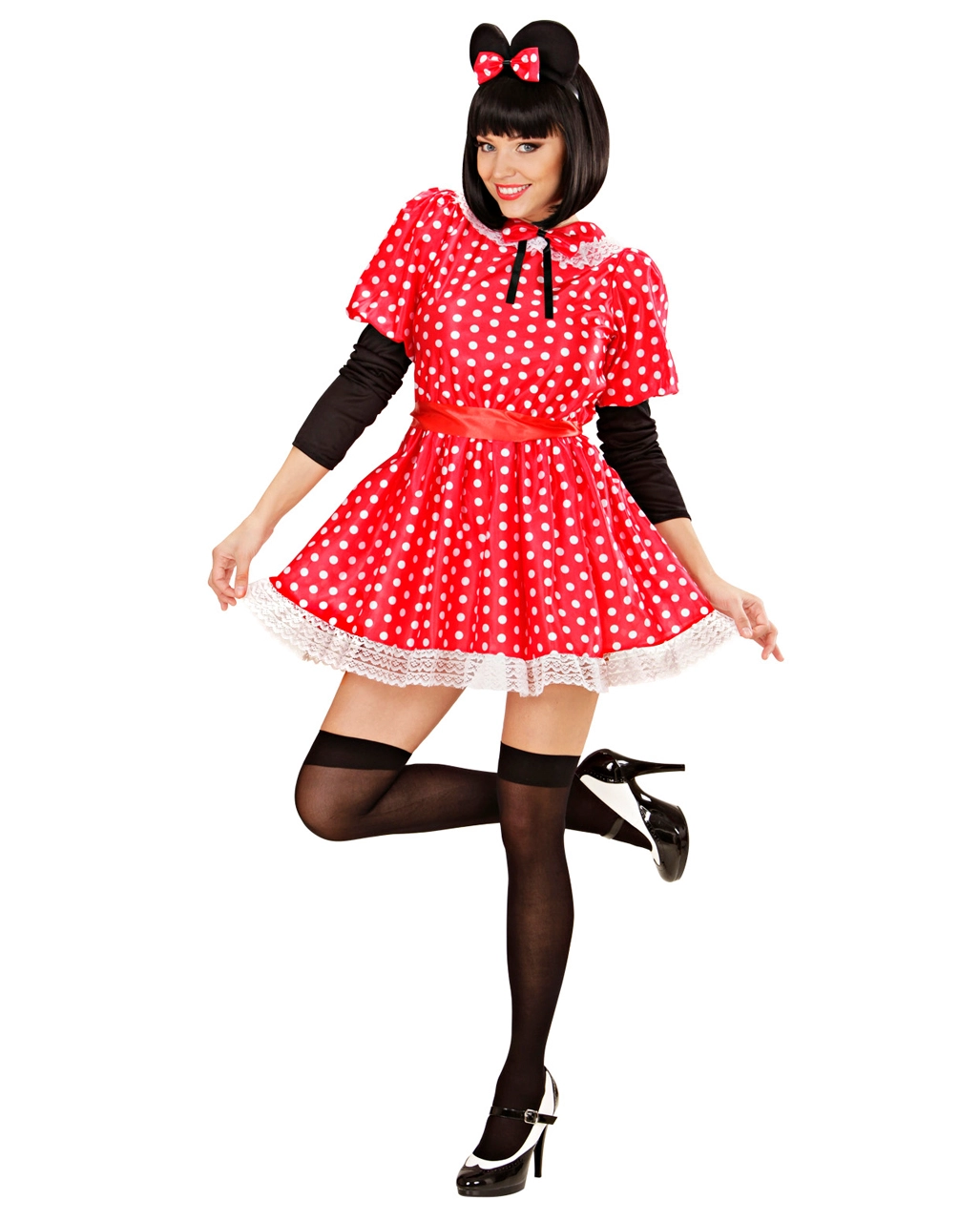 Das Mäusedame Kostüm wird zusammen mit einem Haarreif mit Mausohren und einem roten Stoffgürtel geliefert. Komplett wird dieses Mäuse Outfit allerdings erst mit unseren Weiße Spitzenhandschuhe sowie dem Make Up Stift schwarz für ein süßes Mäusegesicht. Als verkleidete Minnie Maus ziehst du mit diesem sexy Mäusedame Kostüm alle Blicke auf dich, denn das rot weiße Polkadot Kleid ist sehr auffällig und daher ein beliebtes Damenkostüm.
