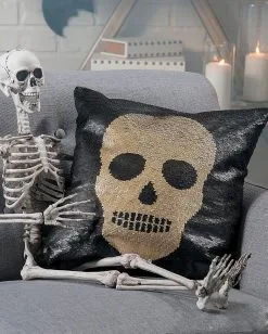 Totenschädel Wendepailletten Kissen Schwarz Gold
